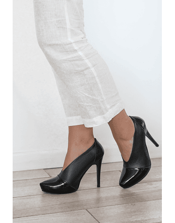 Altura taco 11 cms, plataforma escondida 2,5 cms.